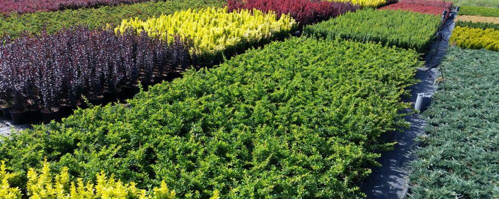 Specjalizujemy się w produkcji drzew i krzewów iglastych i liściastych, m.in. tuje, jałowce, modrzewie, cisy, choiny, sosny, kosodrzewiny, jodły i świerki (w tym świerk srebrny, tuja 'Smaragd', 'Brabant' i inne zimozielone rośliny żywopłotowe) oraz różaneczniki (rododendrony), azalie, budleje, wrzosy, duży wybór pnączy (powojniki - clematisy, wisterie - glicynie, wiciokrzewy, winobluszcze: pięciolistkowy i trójklapowy) oraz roślin okrywowych (trzmieliny, barwinki, bluszcze) i inne ciekawe rośliny.